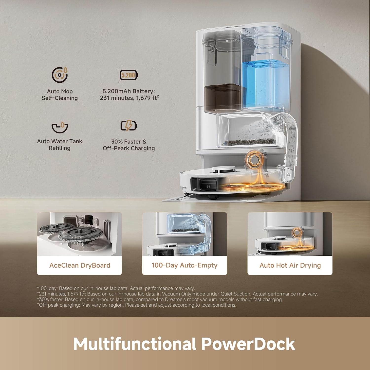 - Off-Peak Charging Saves You Money: Enjoy up to 231 minutes and 1679 ft² of cleaning in Quiet Mode, powered by a robust 5,200mAh battery that supports 30% faster and supports off-peak charging.